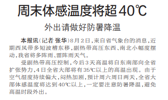周末体感温度将超40℃