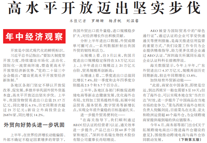 高水平开放迈出坚实步伐