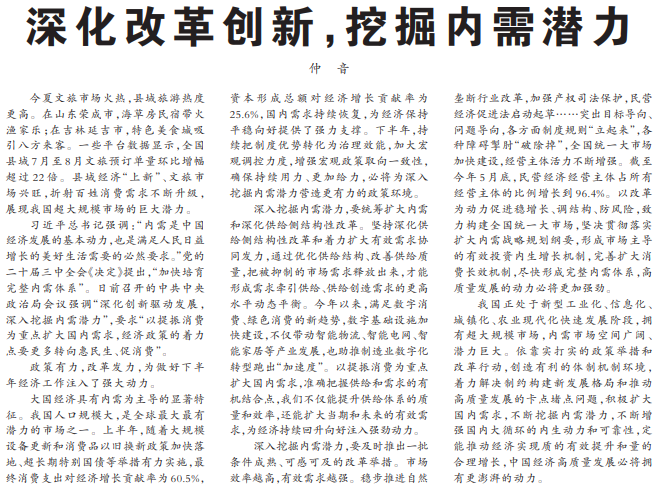 深化改革创新,挖掘内需潜力