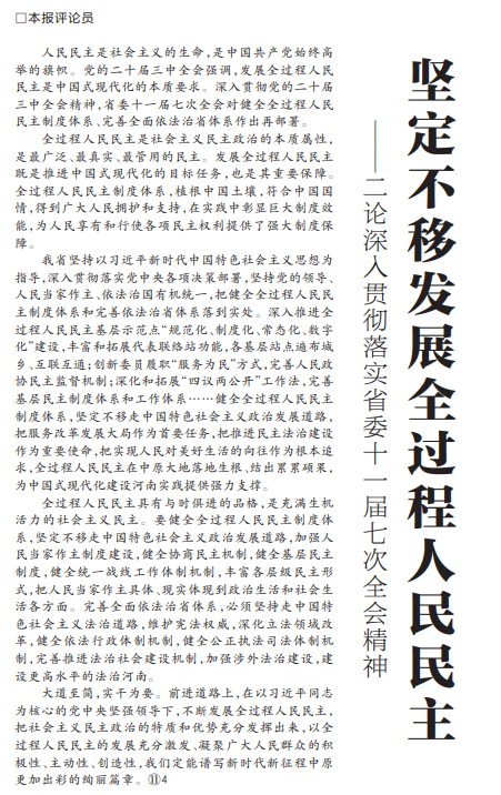 坚定不移发展全过程人民民主