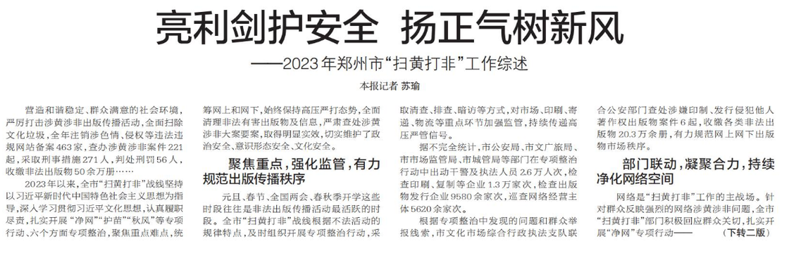 ——2023年郑州市“扫黄打非”工作综述