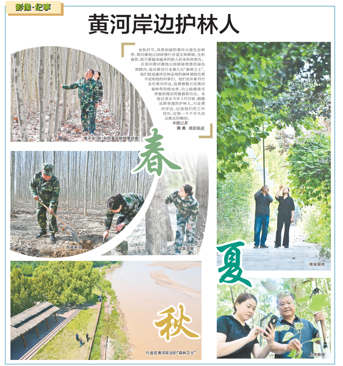 在郑州黄河滩地公园郁郁葱葱的绿色屏障内,每天都会行走着几位“森林卫士”,他们就是惠济区林业局的森林测报员黄平安和他的同事们。他们长年累月行走在黄河岸边,监测着数万亩黄河森林带的病虫害,为上级精准灭害提供翔实的数据和方位。本报记者从今年3月开始,跟随这群普通的护林人,行走黄河岸边,记录他们的工作经历,定格一个个平凡而又难忘的瞬间。(今日《郑州日报》6版)