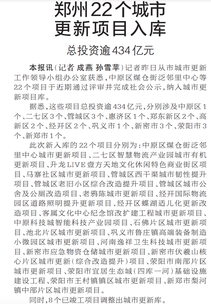 郑州22个城市更新项目入库