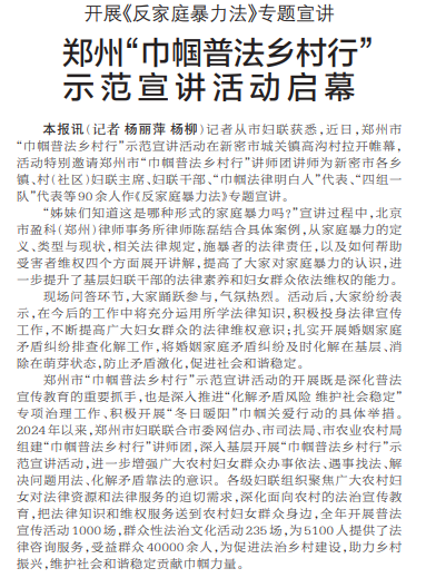 郑州“巾帼普法乡村行”示范宣讲活动启幕