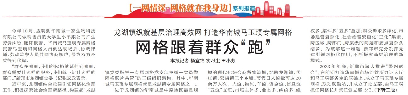 龙湖镇织就基层治理高效网 打造华南城马玉璞专属网格
