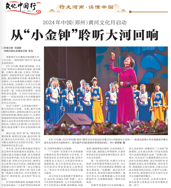 厚重黄河文化邂逅合唱高雅艺术,七夕之夜,一场特别的“国字号”音乐盛会来到郑州。(今日《河南日报》2版)