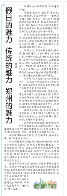 赛龙舟、包粽子、挂艾草、赏古乐、民俗体验游、毕业研学游……刚刚过去的小长假,延续五一火热态势,休闲旅游消费持续升温,民俗文化游热度渐显,郑州各地文化和旅游深度融合场景不断推陈出新,热气腾腾的“端午经济”成为消费活力升级的缩影。(今日《郑州日报》6版)