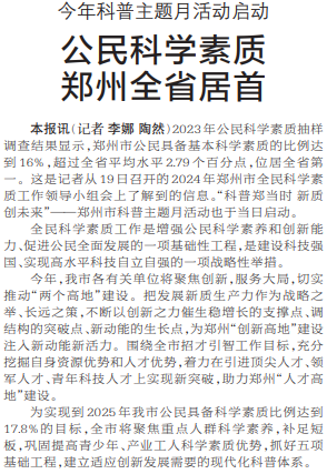 公民科学素质郑州全省居首