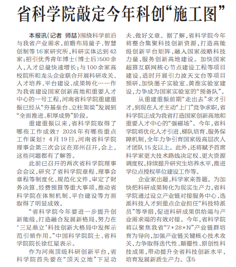 省科学院敲定今年科创“施工图”