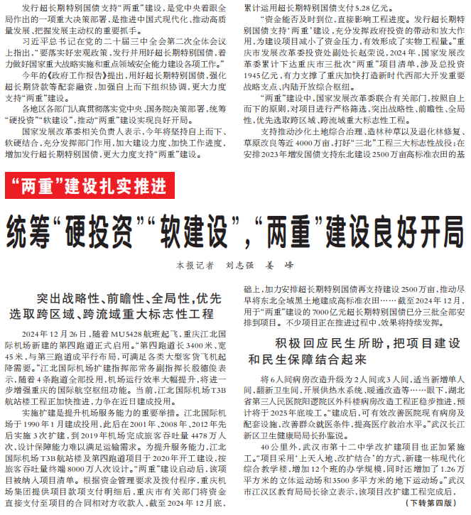 统筹“硬投资”“软建设”,“两重”建设良好开局