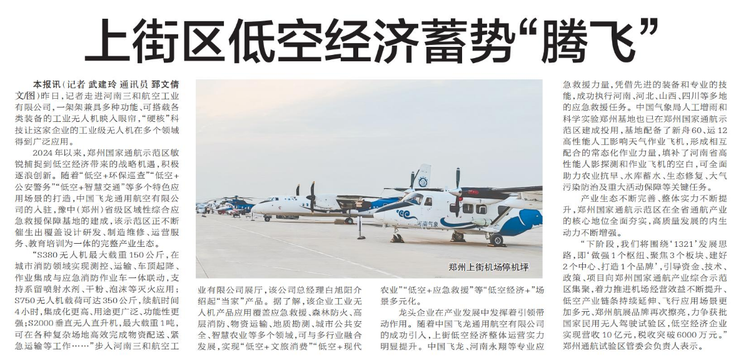 昨日,记者走进河南三和航空工业有限公司,一架架兼具多种功能、可搭载各类装备的工业无人机映入眼帘,“硬核”科技让这家企业的工业级无人机在多个领域得到广泛应用。(今日《郑州日报》7版)