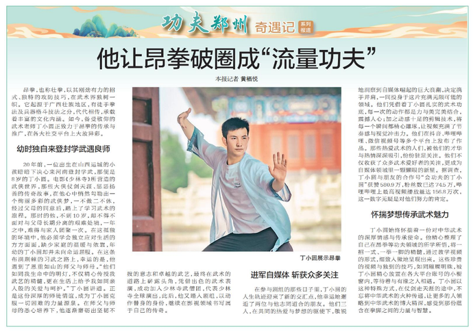 昂拳,也称壮拳,以其刚劲有力的招式、独特的攻防技巧,在武术界独树一帜。它起源于广西壮族地区,有徒手拳法及兵器格斗技法之分,代代相传,承载着丰富的文化内涵。如今,备受敬仰的武术老师丁小圆正致力于昂拳的传承与推广,在各大社交平台上大放异彩。(今日《郑州日报》7版)