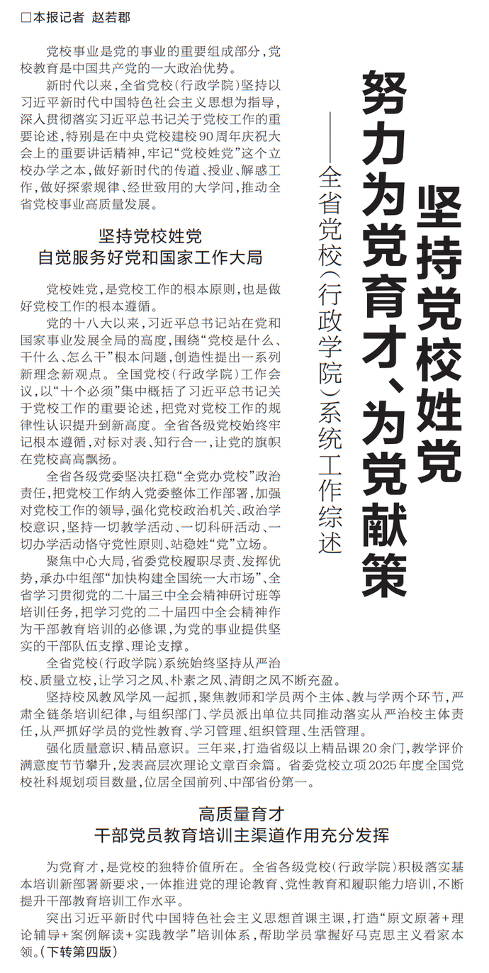 党校事业是党的事业的重要组成部分,党校教育是中国共产党的一大政治优势。(今日《河南日报》1版)