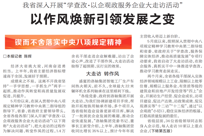 经济大省挑大梁,河南奋进勇担当。上半年,我省主要经济指标增速高于全国,发展好于预期。(今日《河南日报》1版、5版)