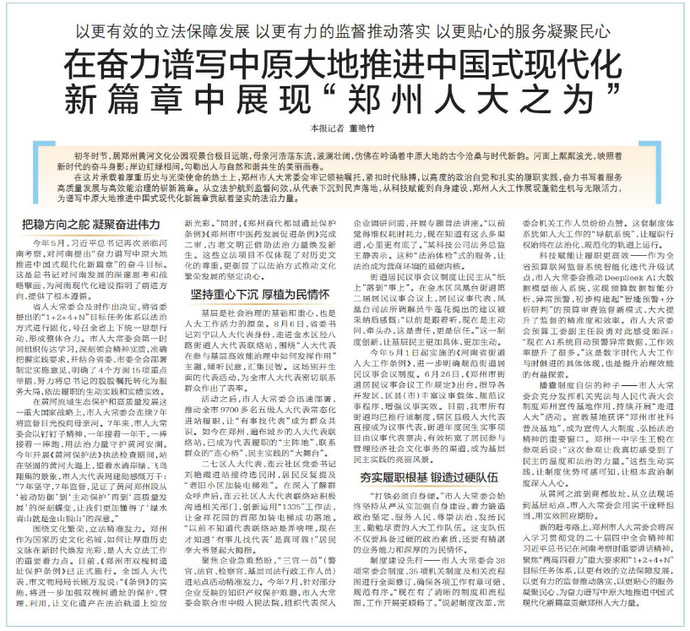 在奋力谱写中原大地推进中国式现代化新篇章中展现“郑州人大之为”