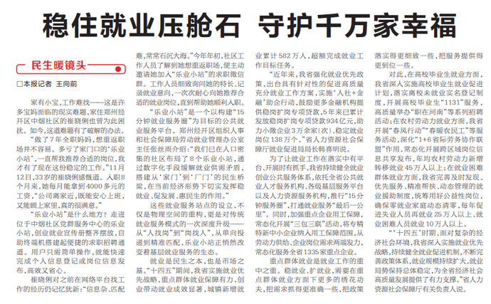 稳住就业压舱石 守护千万家幸福