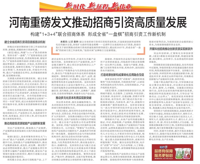 河南重磅发文推动招商引资高质量发展