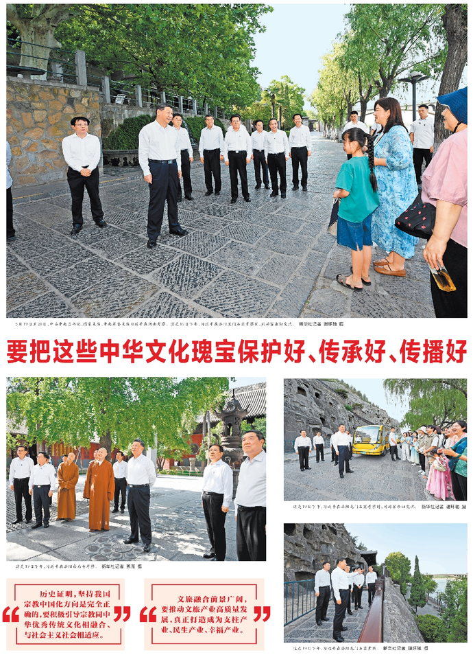 “历史证明,坚持我国宗教中国化方向是完全正确的,要积极引导宗教同中华优秀传统文化相融合、与社会主义社会相适应。”(今日《河南日报》4版)