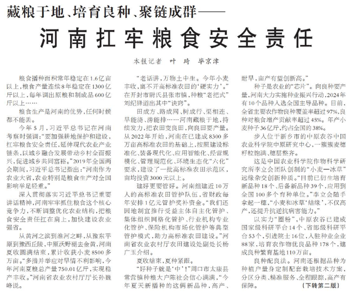 藏粮于地、培育良种、聚链成群——河南扛牢粮食安全责任