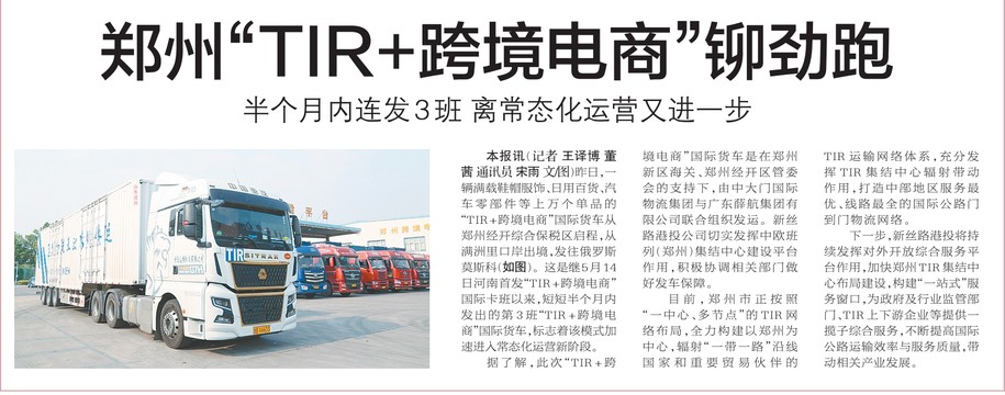 郑州“TIR+跨境电商”铆劲跑