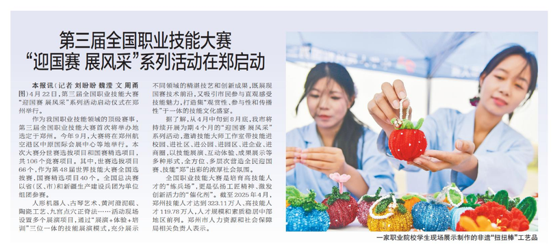 4月22日,第三届全国职业技能大赛“迎国赛 展风采”系列活动启动仪式在郑州举行。(今日《郑州日报》1版)