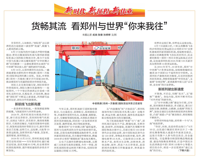 芳菲四月,人间春好。“国际郑”正以澎湃的活力迎接新一波世界“流量”,展翅飞入更高的新云端。(今日《郑州日报》1版、6版)