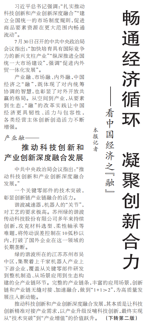 习近平总书记强调:“扎实推动科技创新和产业创新深度融合”“建立全国统一的市场制度规则,促进商品要素资源在更大范围内畅通流动”。