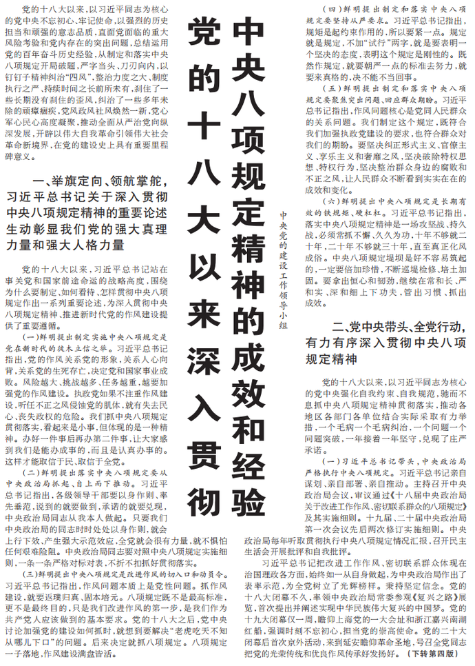 党的十八大以来深入贯彻中央八项规定精神的成效和经验