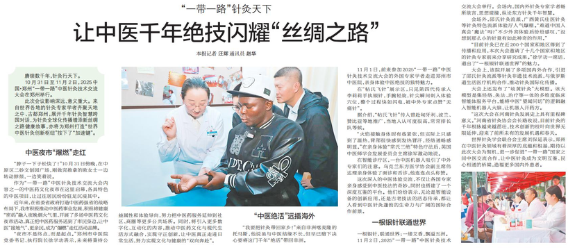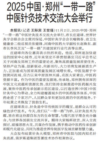 10月31日至11月2日,2025中国·郑州“一带一路”中医针灸技术交流大会在郑州举行。(今日《郑州日报》2版)