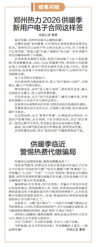 郑州热力2026供暖季新用户电子合同这样签