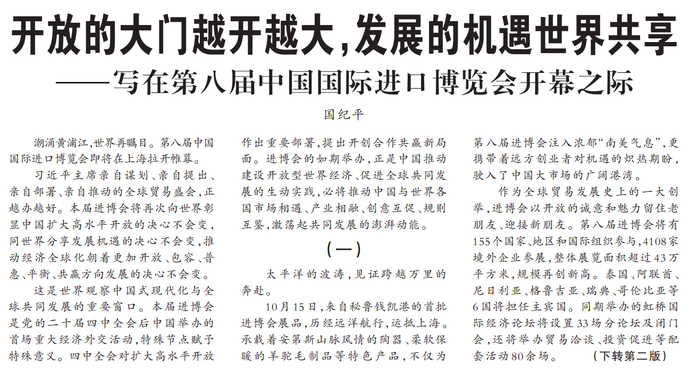 ——写在第八届中国国际进口博览会开幕之际