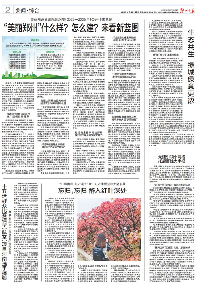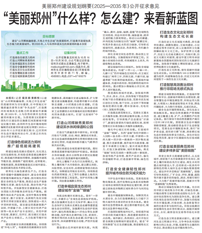美丽郑州建设规划纲要(2025—2035年)公开征求意见