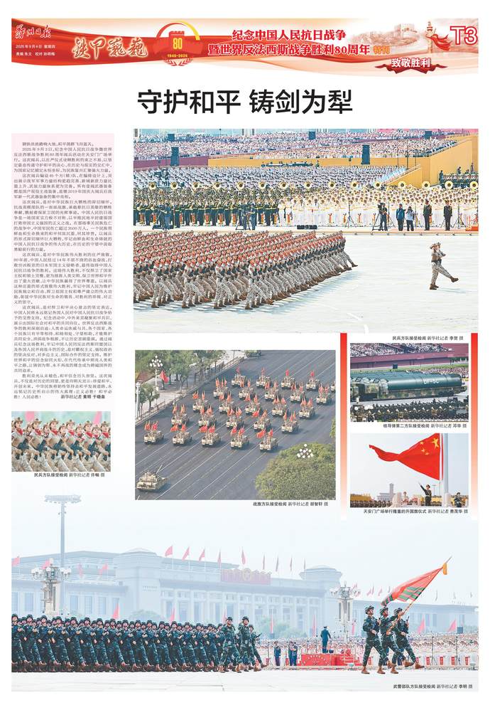 铭记伟大历史胜利,凝聚正义和平力量。9月3日上午,纪念中国人民抗日战争暨世界反法西斯战争胜利80周年大会在北京天安门广场隆重举行,以盛大阅兵仪式,同世界人民一道纪念这个伟大的日子,共同开创更加光明的未来。中共中央总书记、国家主席、中央军委主席习近平发表重要讲话并检阅受阅部队。