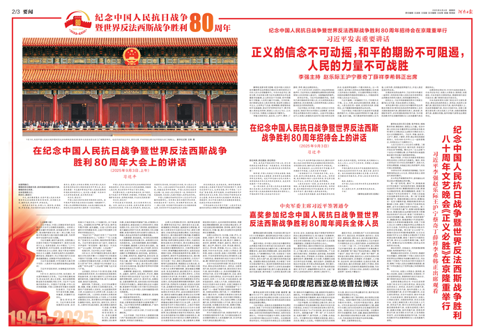 纪念中国人民抗日战争暨世界反法西斯战争胜利80周年大会在京隆重举行
