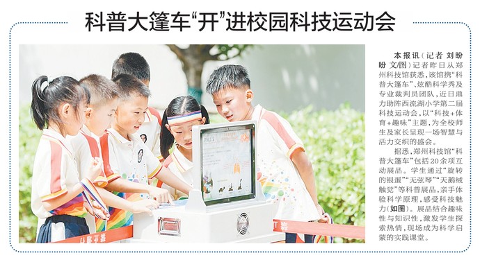 记者昨日从郑州科技馆获悉,该馆携“科普大篷车”、炫酷科学秀及专业裁判员团队,近日鼎力助阵西流湖小学第二届科技运动会,以“科技+体育+趣味”主题,为全校师生及家长呈现一场智慧与活力交织的盛会。(今日《郑州日报》2版)