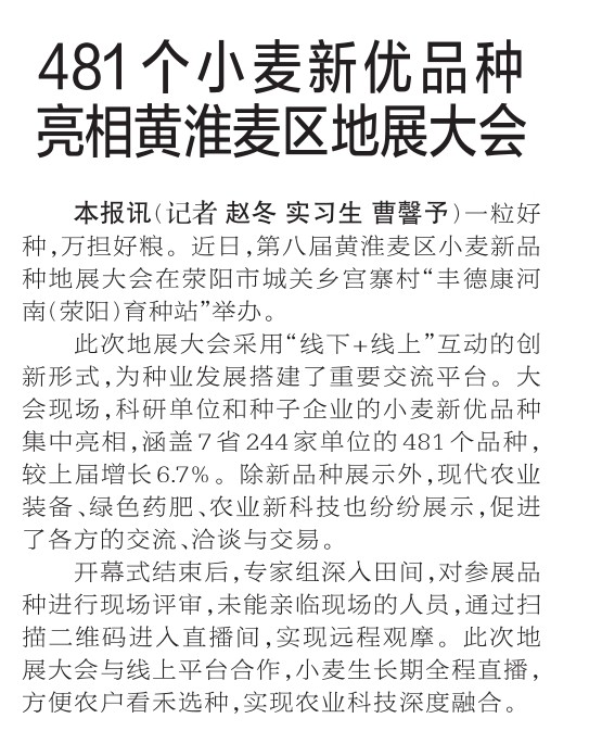 一粒好种,万担好粮。近日,第八届黄淮麦区小麦新品种地展大会在荥阳市城关乡宫寨村“丰德康河南(荥阳)育种站”举办。(今日《郑州日报》2版)