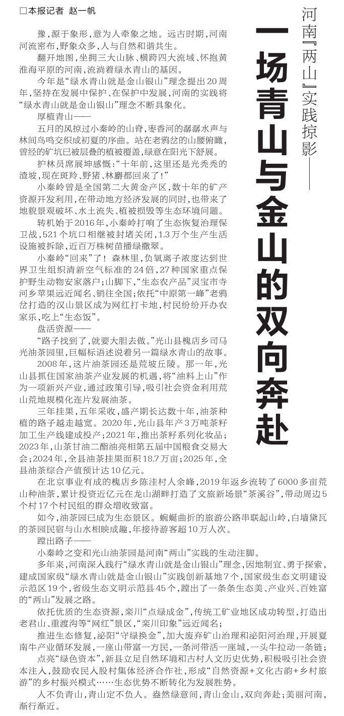 翻开地图,坐拥三大山脉、横跨四大流域、怀抱黄淮海平原的河南,流淌着绿水青山的基因。(今日《河南日报》1版)