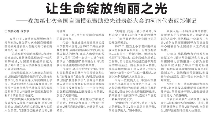 ——参加第七次全国自强模范暨助残先进表彰大会的河南代表返郑侧记