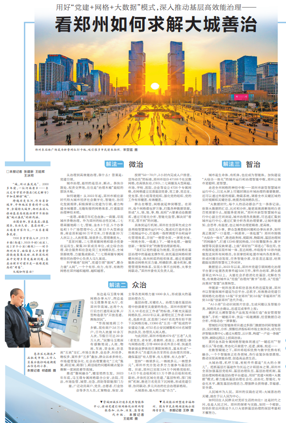 跨越历史长河,作为省会城市、中部地区重要的中心城市、全国特大城市,郑州在深入推动基层高效能治理中不断拓展“城以盛民”的新内涵。(今日《河南日报》3版)