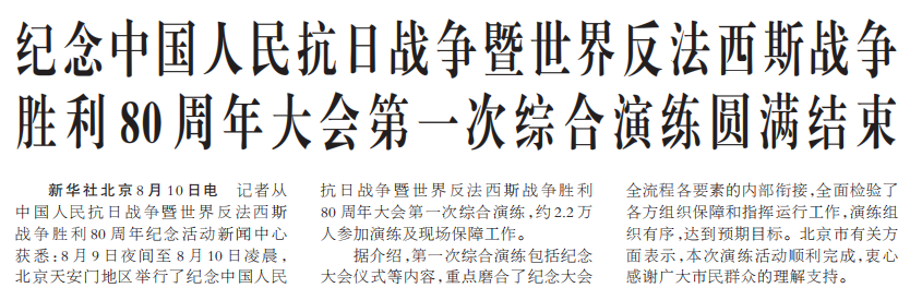 纪念中国人民抗日战争暨世界反法西斯战争胜利80周年大会第一次综合演练圆满结束