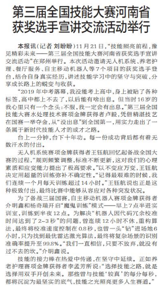 第三届全国技能大赛河南省获奖选手宣讲交流活动举行
