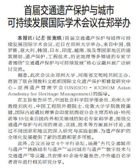 首届交通遗产保护与城市可持续发展国际学术会议在郑举办