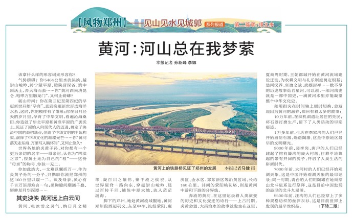 气势磅礴?你5464公里水流泱泱,越崇山峻岭,跨宁蒙平原,腾陕晋深谷,淌中原沃土,奔大海而去……你“黄河西来决昆仑,咆哮万里触龙门”,又何止磅礴?(今日《郑州日报》1版、2版)
