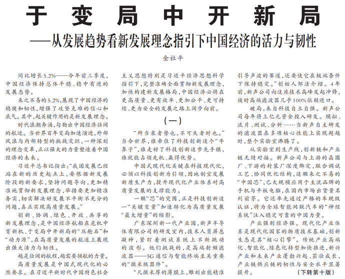 同比增长5.2%——今年前三季度,中国经济保持总体平稳、稳中有进的发展态势。(今日《人民日报》1版、10版)