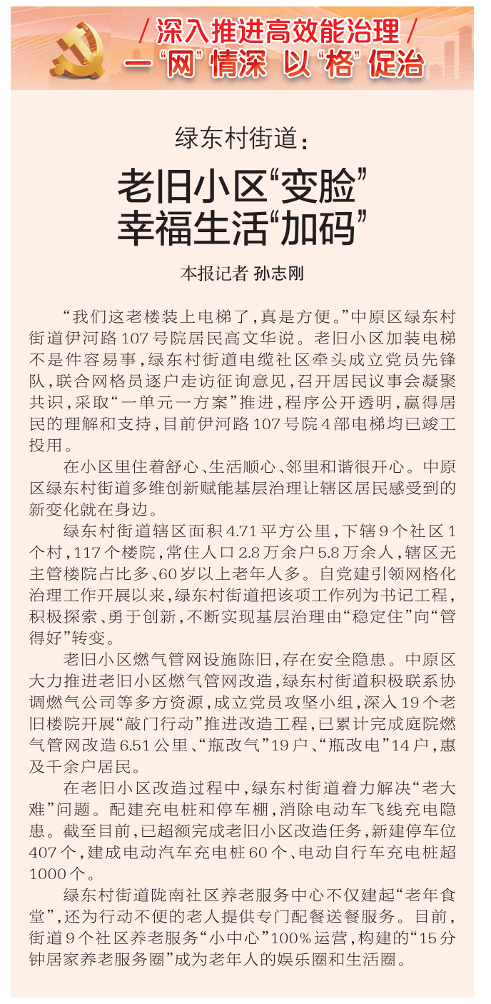 “我们这老楼装上电梯了,真是方便。”中原区绿东村街道伊河路107号院居民高文华说。老旧小区加装电梯不是件容易事,绿东村街道电缆社区牵头成立党员先锋队,联合网格员逐户走访征询意见,召开居民议事会凝聚共识,采取“一单元一方案”推进,程序公开透明,赢得居民的理解和支持,目前伊河路107号院4部电梯均已竣工投用。(今日《郑州日报》2版)