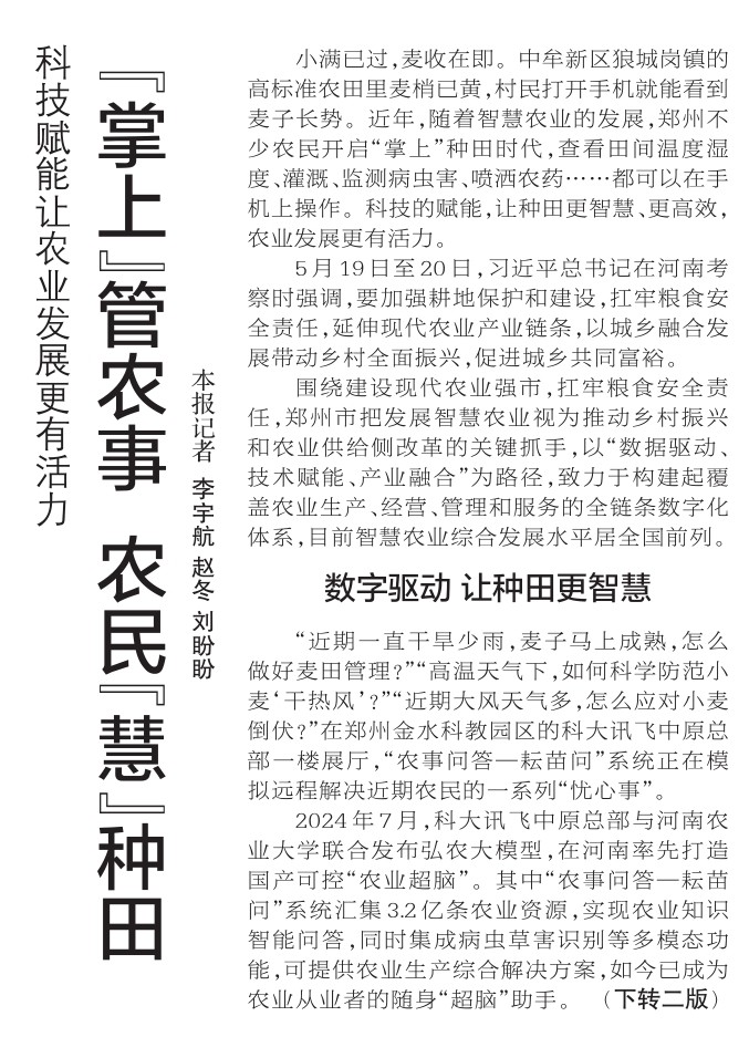 正值“三夏”关键时期,记者深入生产一线,记录下一个个与时间赛跑的“三夏”小故事。(今日《郑州日报》2版)
