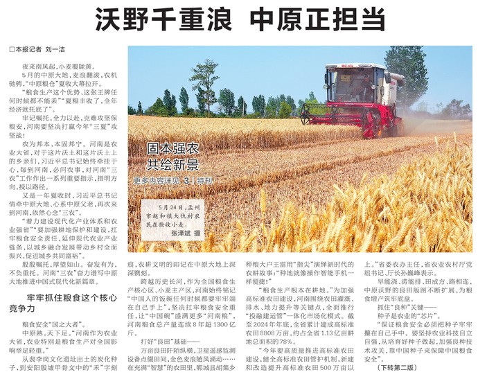 5月的中原大地,麦浪翻滚,农机驰骋,“中原粮仓”夏收大幕拉开。