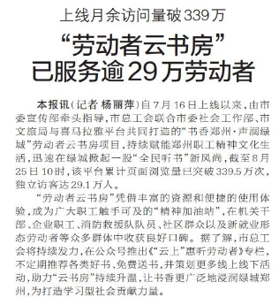 “劳动者云书房”已服务逾29万劳动者