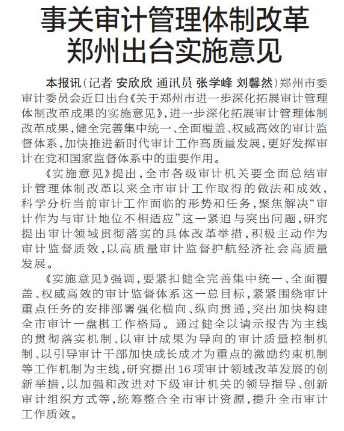 事关审计管理体制改革郑州出台实施意见