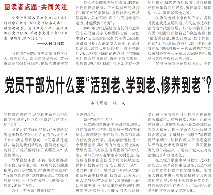 党员干部为什么要“活到老、学到老、修养到老”?
